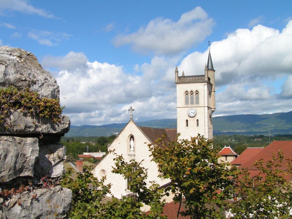 - La plus petite de 1739, pèse 70kg. Elle provient de la Tour Médiévale et a été offerte ainsi que l’horloge, à l’église, par la famille de Quinsonas.